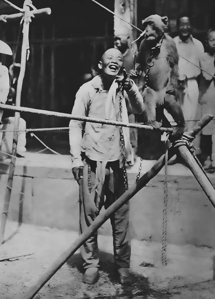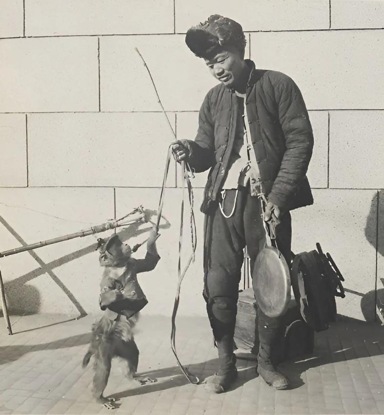 暴躁的猴子、狡黠的老鼠、笨拙的狗熊,乃至傻乎乎的蛤蟆、没头脑的蚂蚁……随着主人指挥,都能作揖打滚、卖萌逗趣,这是民国时期老北京街头风景里,少不了的驯兽表演。